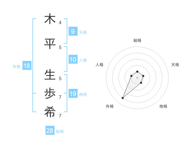 木平 生歩希さんの総格は28画の1点!