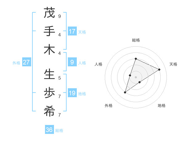 茂手木 生歩希さんの天格は17画の4点!