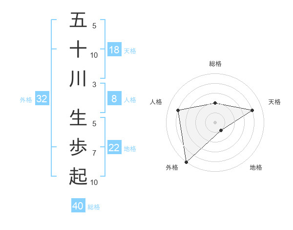五十川 生歩起さんを姓名の画数から五運を鑑定