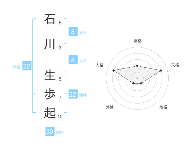 石川 生歩起さんの総格は30画の2点