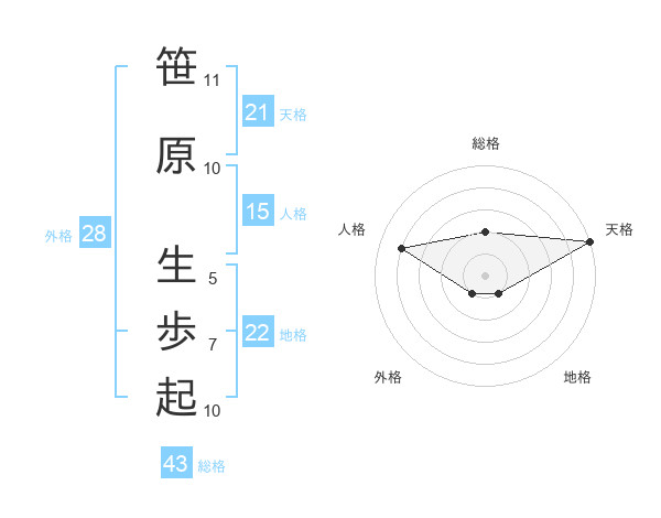 笹原 生歩起さんを姓名の画数から五運を鑑定