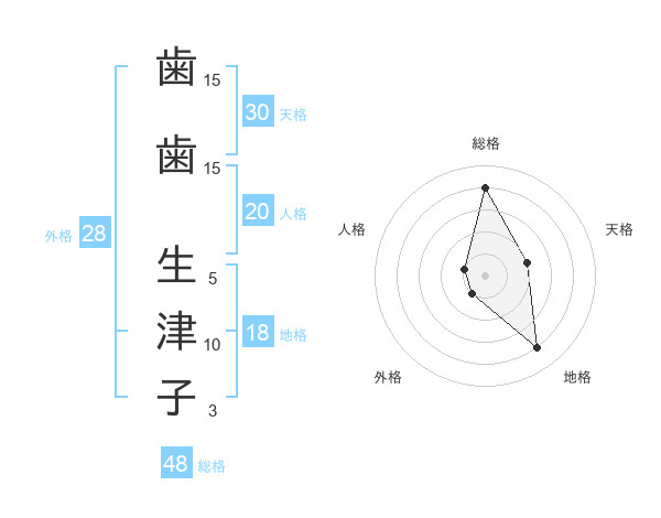 歯歯 生津子さんを姓名の画数から五運を鑑定