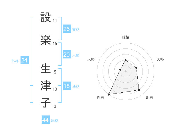 設楽 生津子さんの外格は24画の5点!