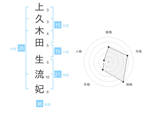上久木田 生流妃さんを姓名の画数から五運を鑑定