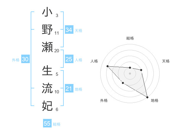 小野瀬 生流妃さんを姓名の画数から五運を鑑定