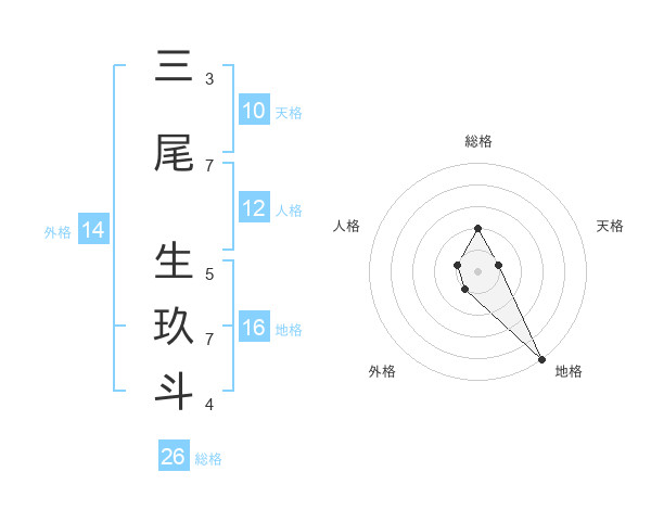三尾 生玖斗さんを姓名の画数から五運を鑑定