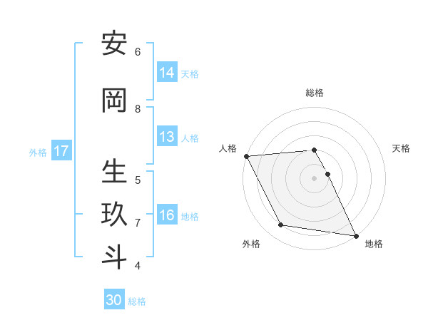 安岡 生玖斗さんを姓名の画数から五運を鑑定