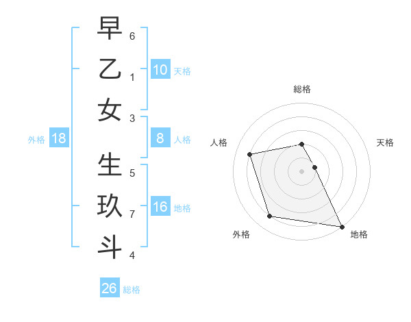 本サイトの鑑定結果の正当性は保証しません。鑑定結果は参考程度にお読みください。実際の名づけにご利用される場合は、姓名判断についてご自身でよくお調べください。