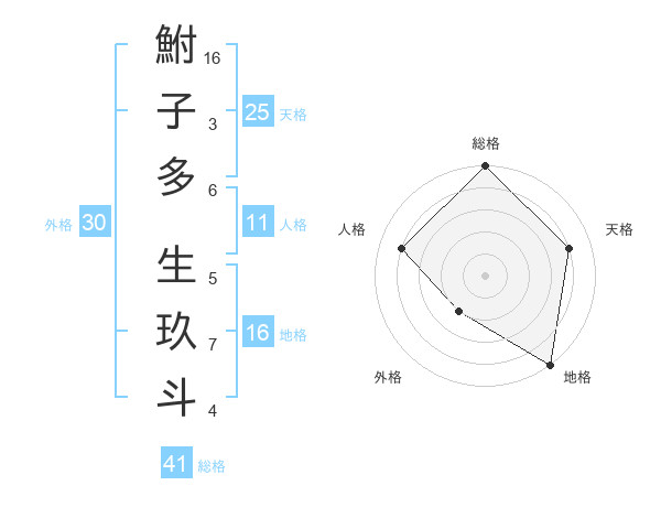鮒子多 生玖斗さんを姓名の画数から五運を鑑定