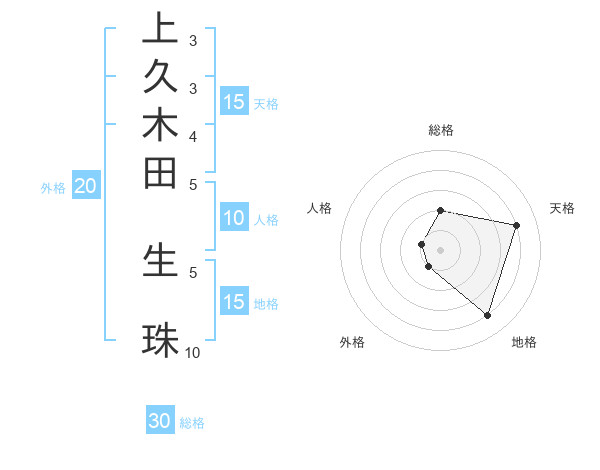 上久木田 生珠さんを姓名の画数から五運を鑑定