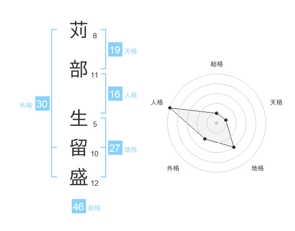 苅部 生留盛さんを姓名の画数から五運を鑑定
