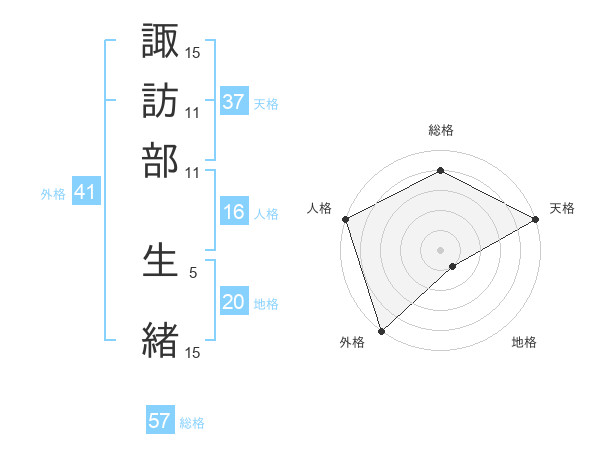諏訪部 生緒さんの総格は57画の4点!
