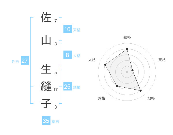 佐山 生縫子さんの総格は35画の4点