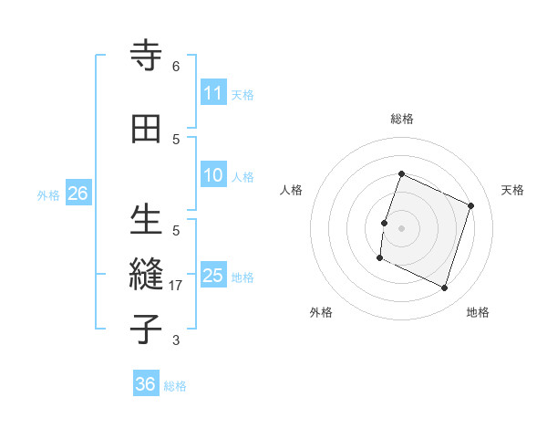 寺田 生縫子さんを姓名の画数から五運を鑑定