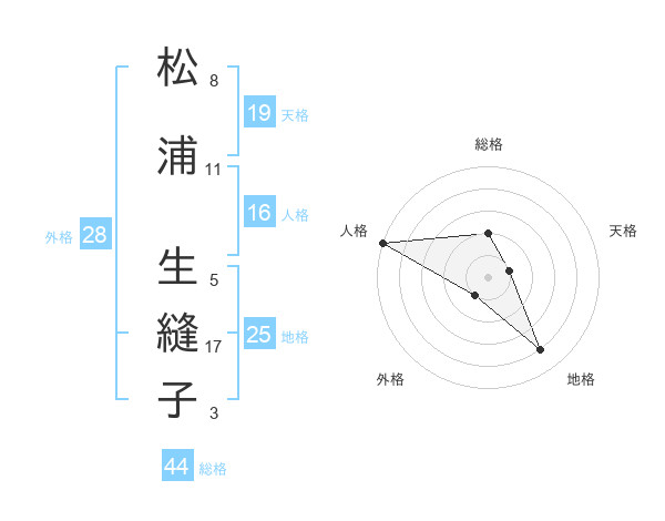 松浦 生縫子さんを姓名の画数から五運を鑑定