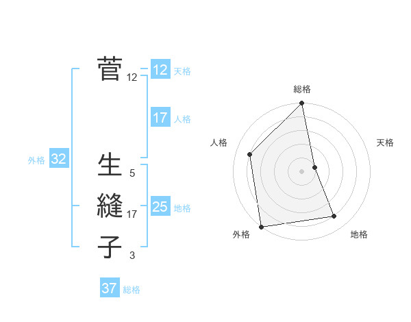 菅 生縫子さんを姓名の画数から五運を鑑定