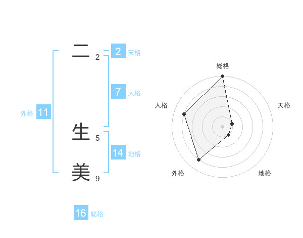 二 生美さんの総格は16画の5点!