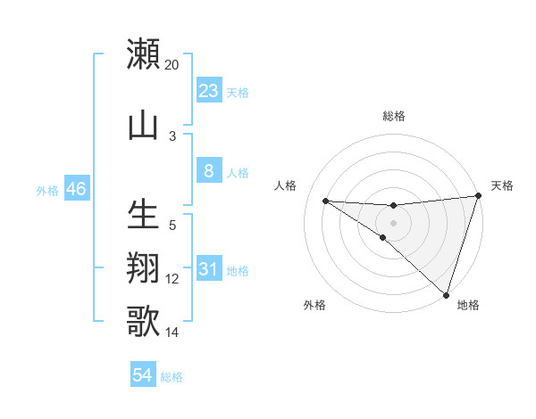 瀬山 生翔歌さんを姓名の画数から五運を鑑定