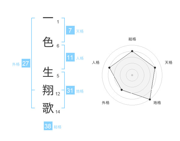一色 生翔歌さんの総格は38画の4点!