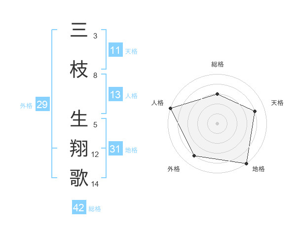 三枝 生翔歌さんを姓名の画数から五運を鑑定