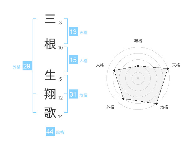 三根 生翔歌さんを姓名の画数から五運を鑑定