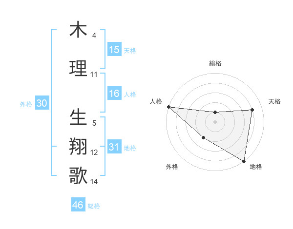 木理 生翔歌さんの天格は15画の4点!