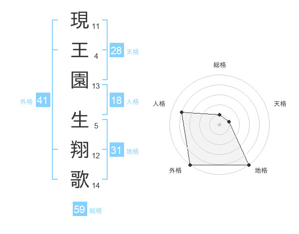 現王園 生翔歌さんを姓名の画数から五運を鑑定
