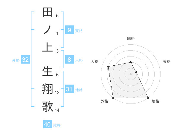 田ノ上 生翔歌さんを姓名の画数から五運を鑑定