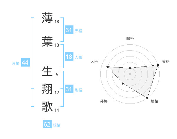 薄葉 生翔歌さんを姓名の画数から五運を鑑定