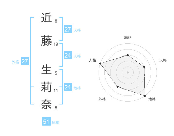 近藤 生莉奈さんを姓名の画数から五運を鑑定