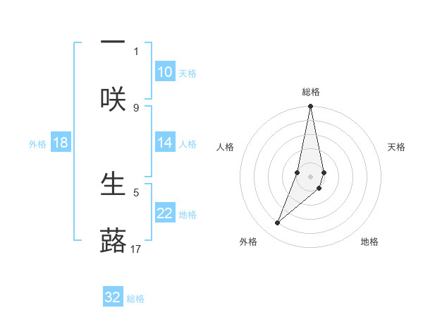 一咲 生蕗さんの総格は32画の5点!