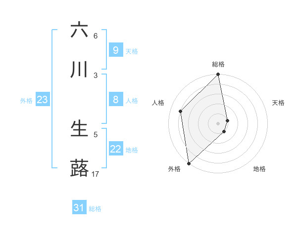 六川 生蕗さんの総格は31画の5点!