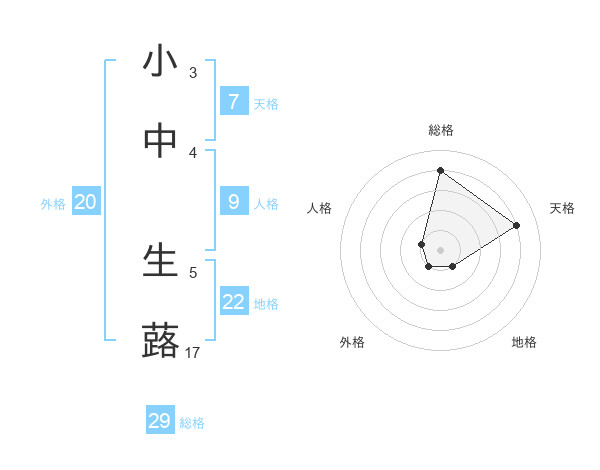 小中 生蕗さんを姓名の画数から五運を鑑定