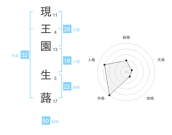 現王園 生蕗さんの総格は50画の2点!
