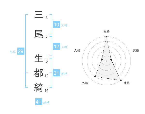 三尾 生都綺さんの総格は41画の5点