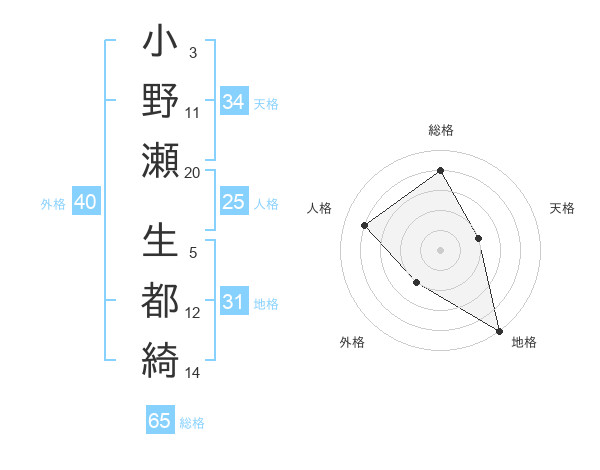 小野瀬 生都綺さんを姓名の画数から五運を鑑定