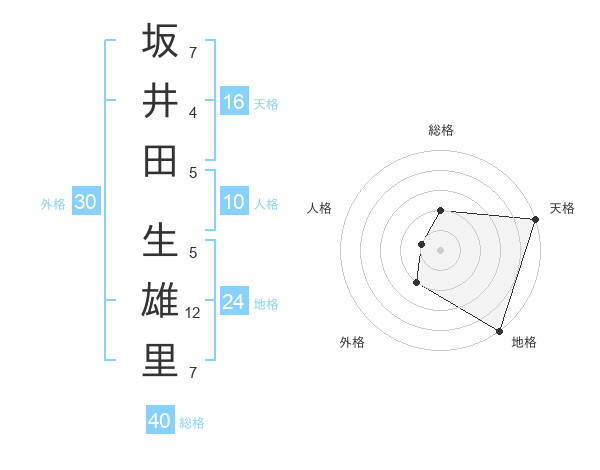 坂井田 生雄里さんを姓名の画数から五運を鑑定