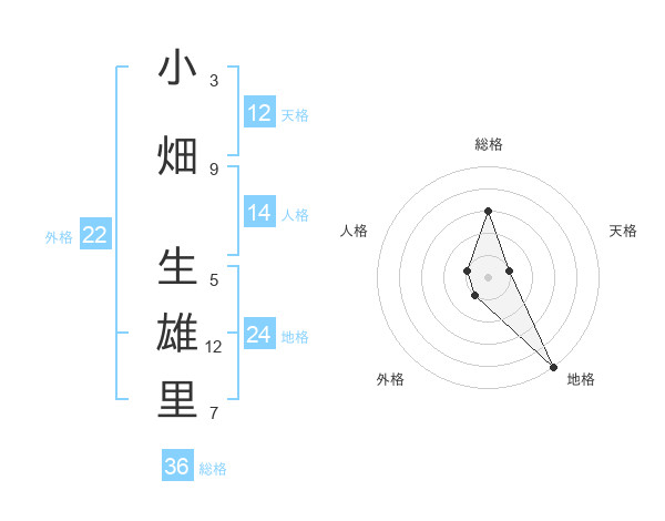 小畑 生雄里さんを姓名の画数から五運を鑑定