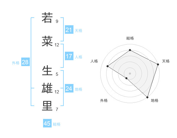若菜 生雄里さんの総格は45画の4点!