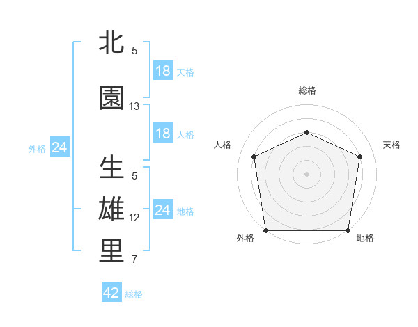 北園 生雄里さんを姓名の画数から五運を鑑定