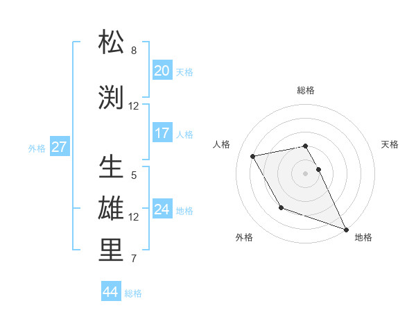 松渕 生雄里さんを姓名の画数から五運を鑑定