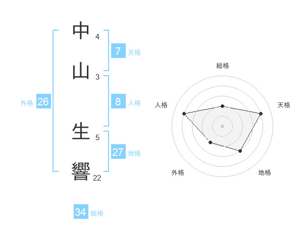 中山 生響さんの総格は34画の2点!