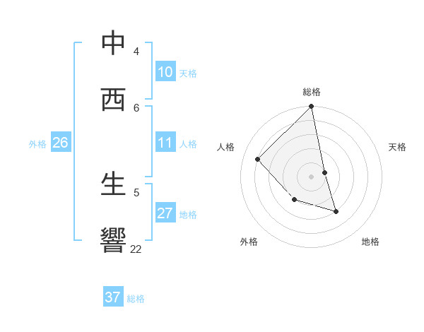 中西 生響さんの総格は37画の5点!