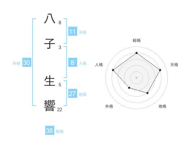 八子 生響さんの総格は38画の4点!
