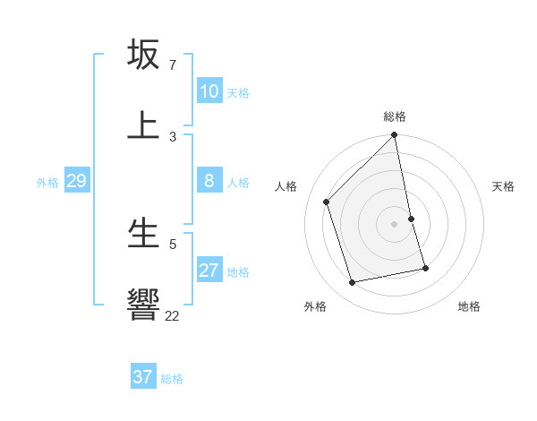 坂上 生響さんの総格は37画の5点!