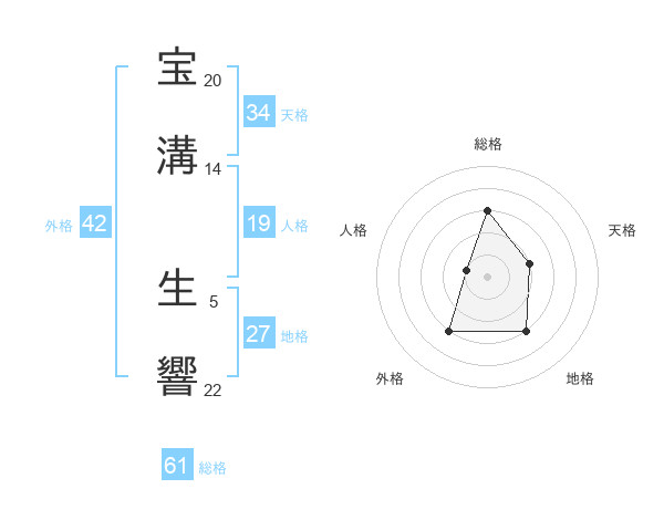 宝溝 生響さんを姓名の画数から五運を鑑定