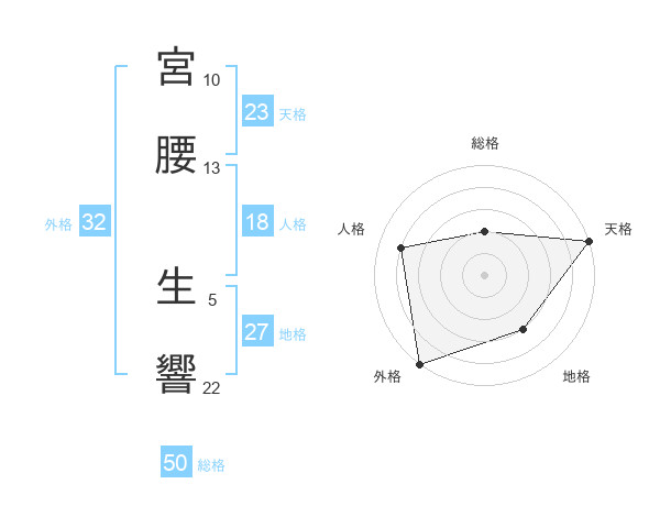 宮腰 生響さんを姓名の画数から五運を鑑定