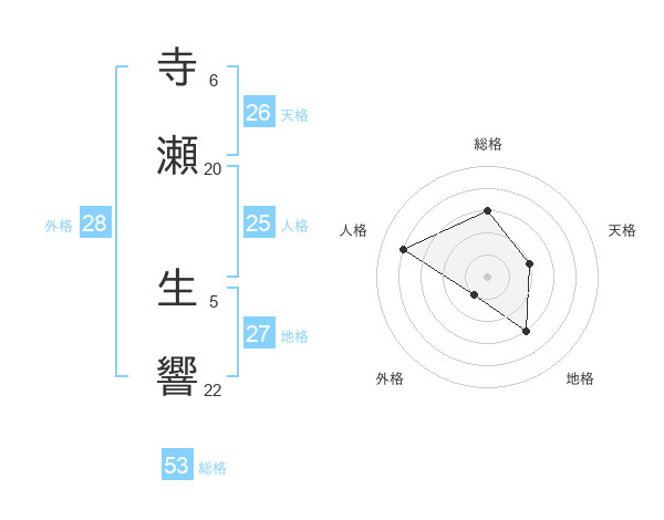寺瀬 生響さんの天格は26画の2点!