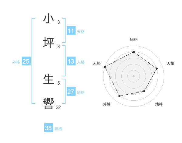 小坪 生響さんの総格は38画の4点!