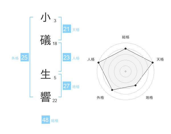 小礒 生響さんの天格は21画の5点!